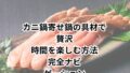 冷凍カニは解凍方法や加熱時間によって食感が大きく変わります。商品ページに書かれている解凍方法や調理方法は、必ず目を通してから調理するのがおすすめです。正確な情報は各通販サイト・公式ページをご確認ください。最終的な判断や細かな調理の相談は、専門家やお店にご相談ください。