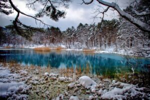 冬(12月〜2月)は観光客も少なく、雪に覆われた静寂の中で、青沼が際立つ「雪と青のコントラスト」も見どころです❄️。